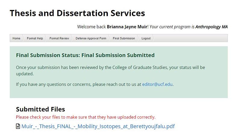 At the moment, I'm working hard on the draft journal article this will turn into. Additionally, the entire thesis will be open access through UCF STARS in August 2024. If you have any questions about my thesis, research, or experience in the Anthro department at UCF, please reach out!